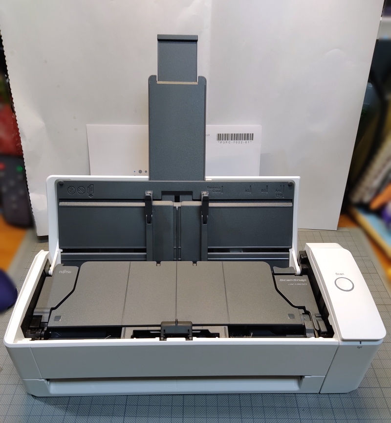 大きいのは置き場所にこまるので、一番小さいタイプの「ScanSnap iX1300」にしました。